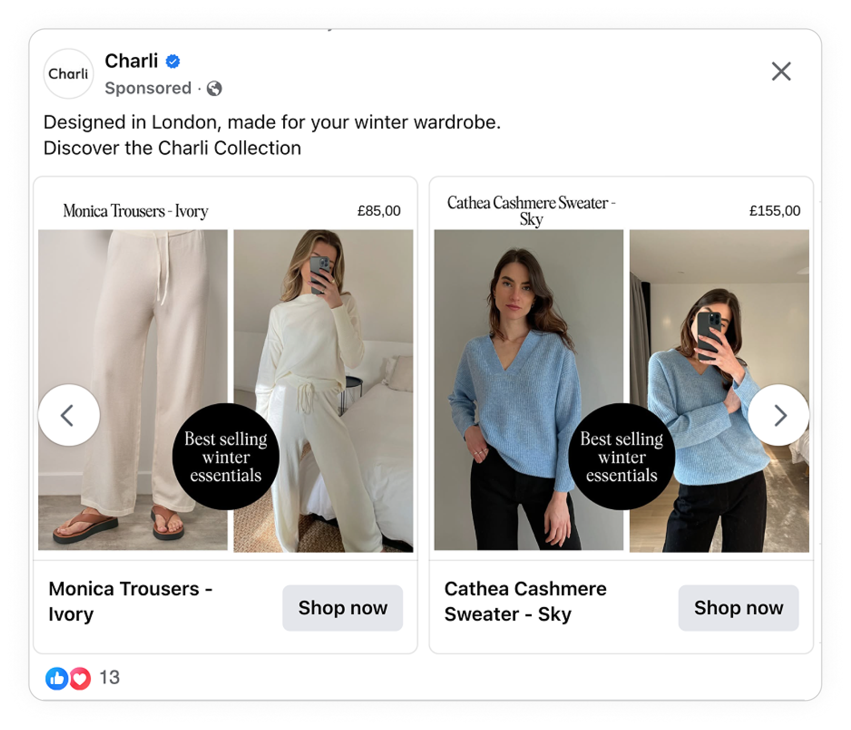 One of the most important goals Charli wanted to achieve was to attract new customers. One look at their existing catalog and Prospa knew the best way to do this was to create more impactful, visually appealing ads.