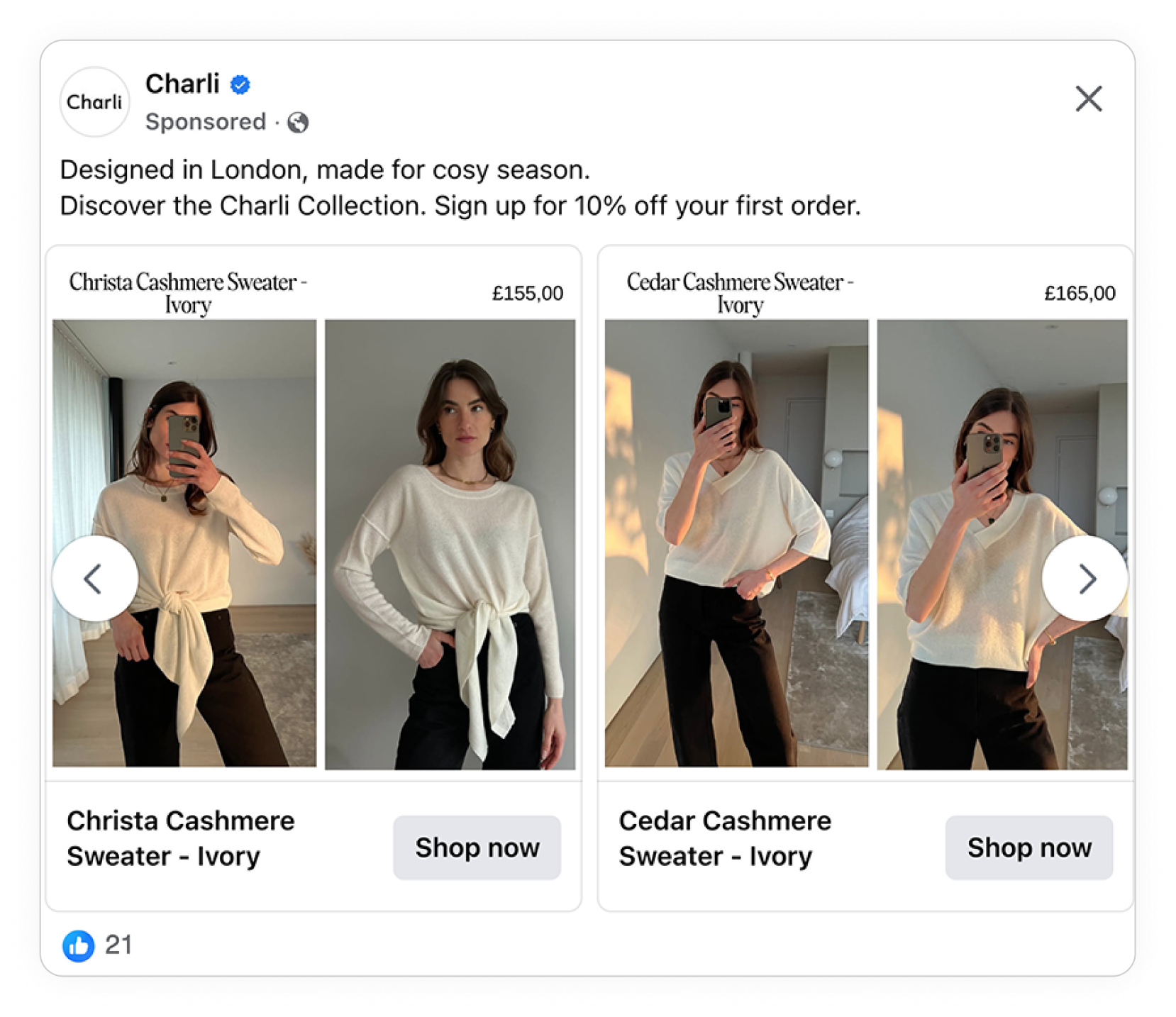 It was a smart and easy strategy to implement. And it helped Charli reach more customers than they ever would with in-feed ads alone.