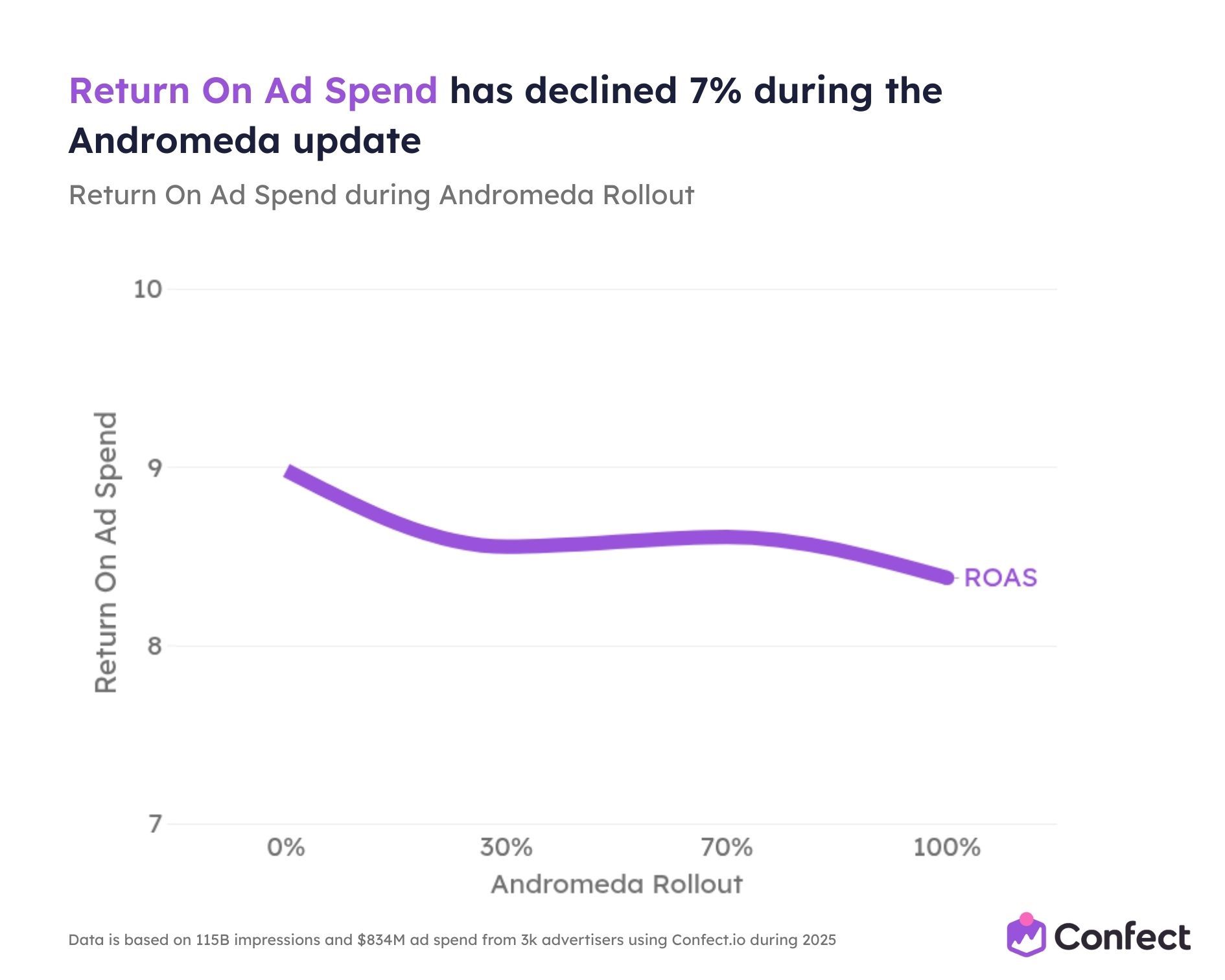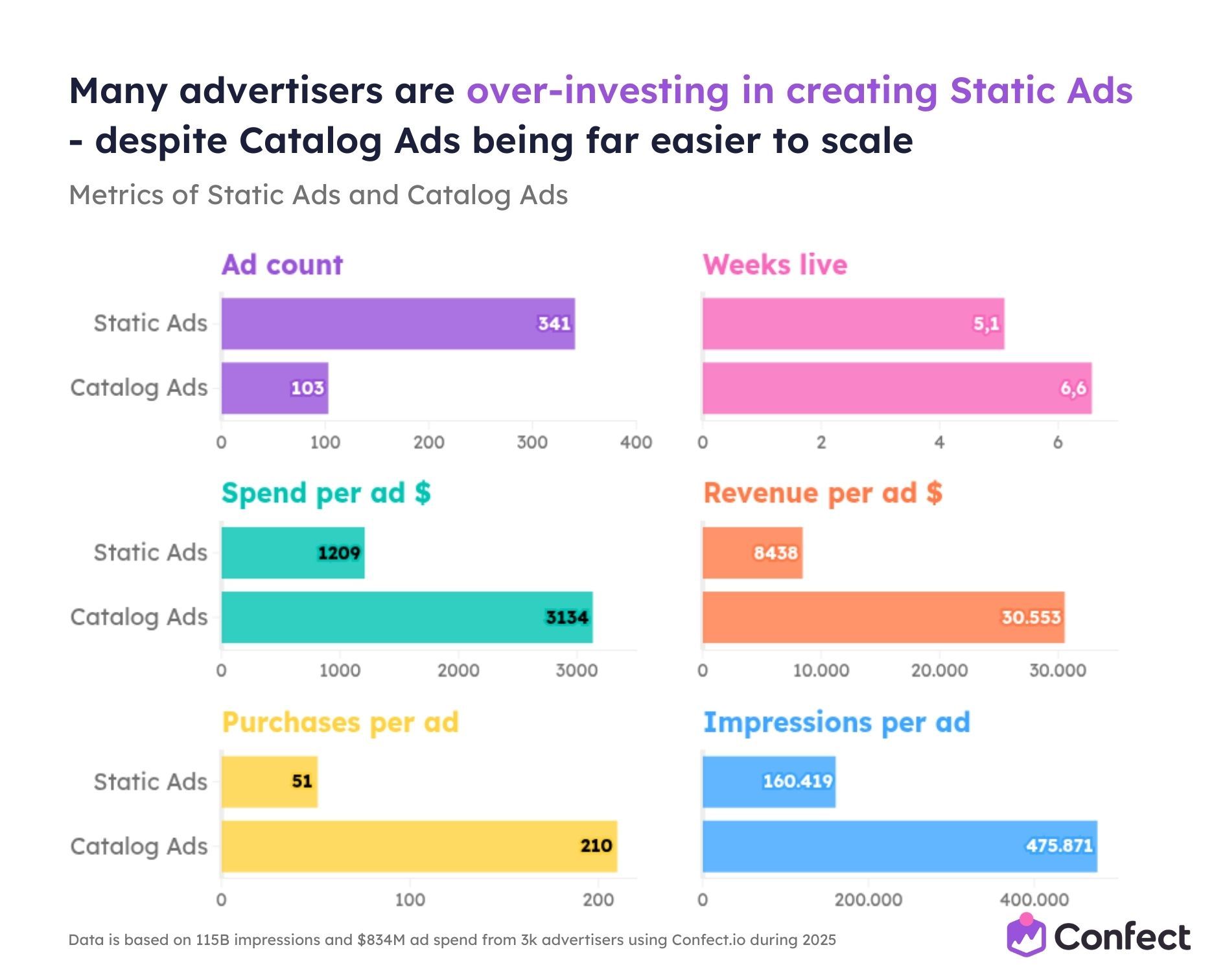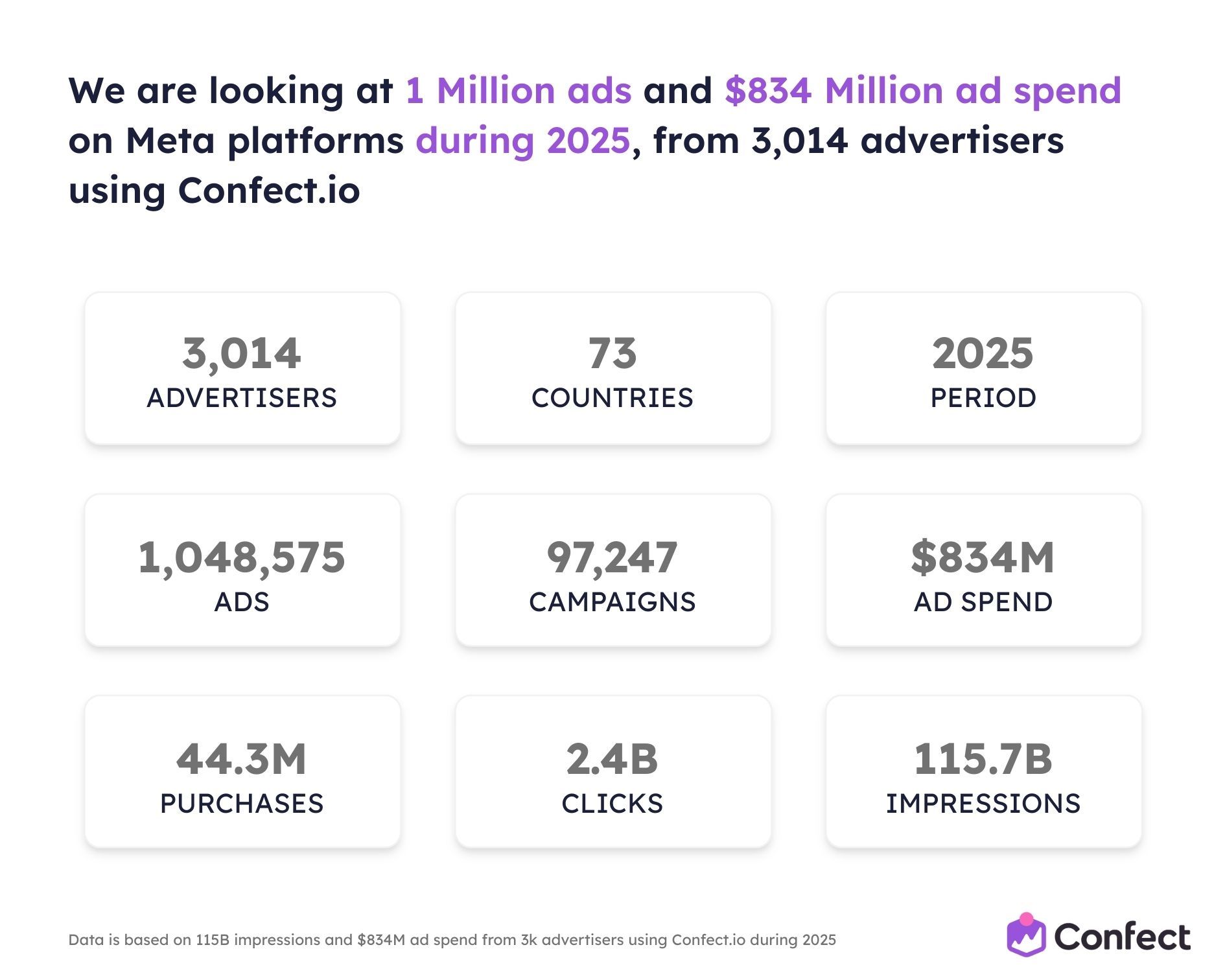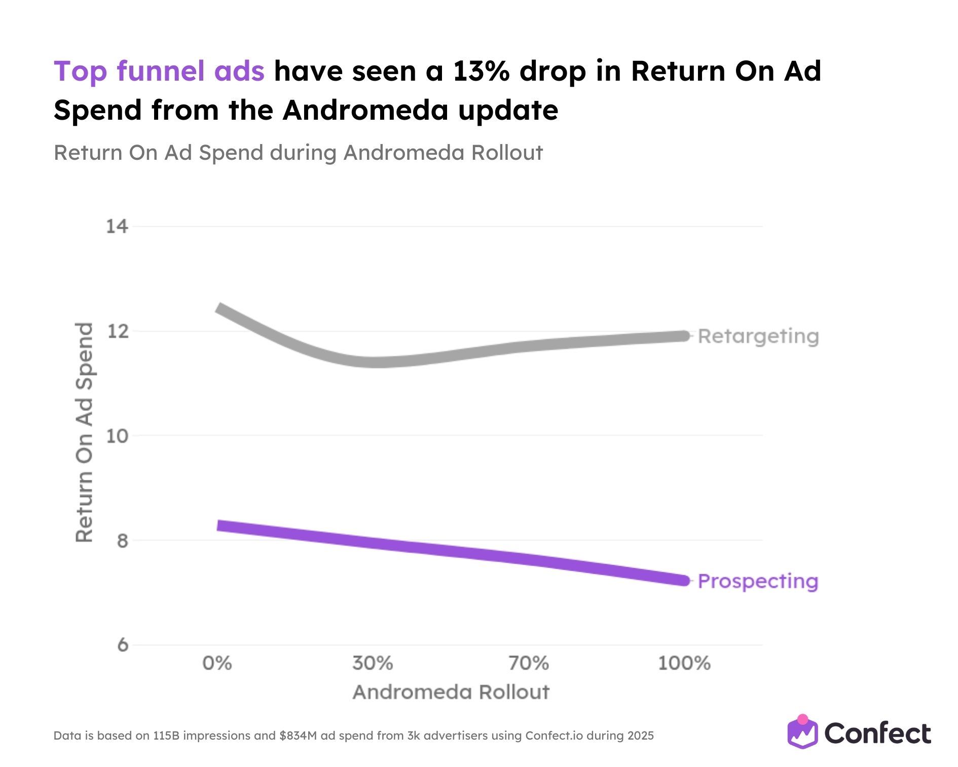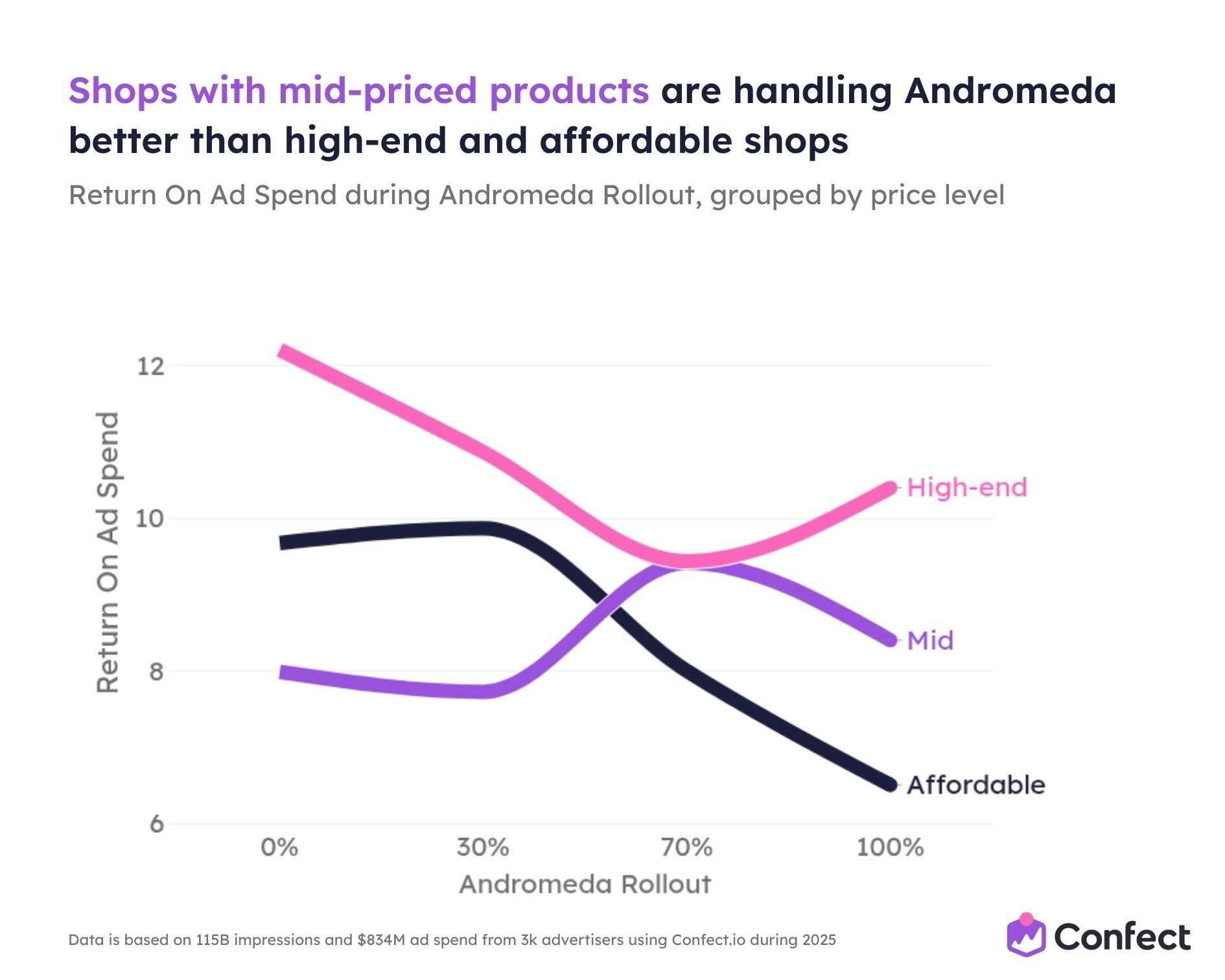 So we studied it. Across 3,014 eCommerce advertisers using Confect, covering $834 million in ad spend, 1 million ads, and 115.7 billion impressions during the full 2025 rollout period.