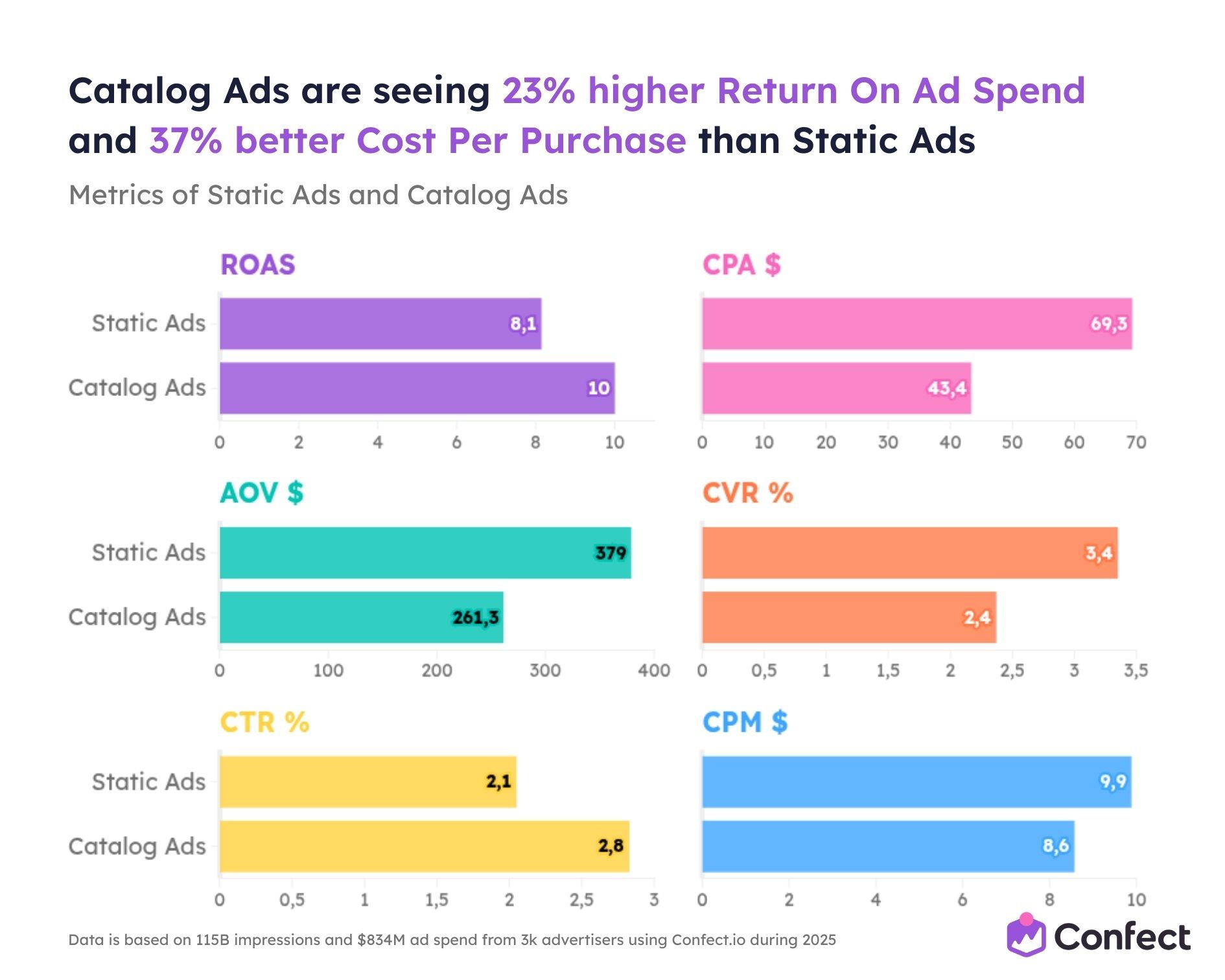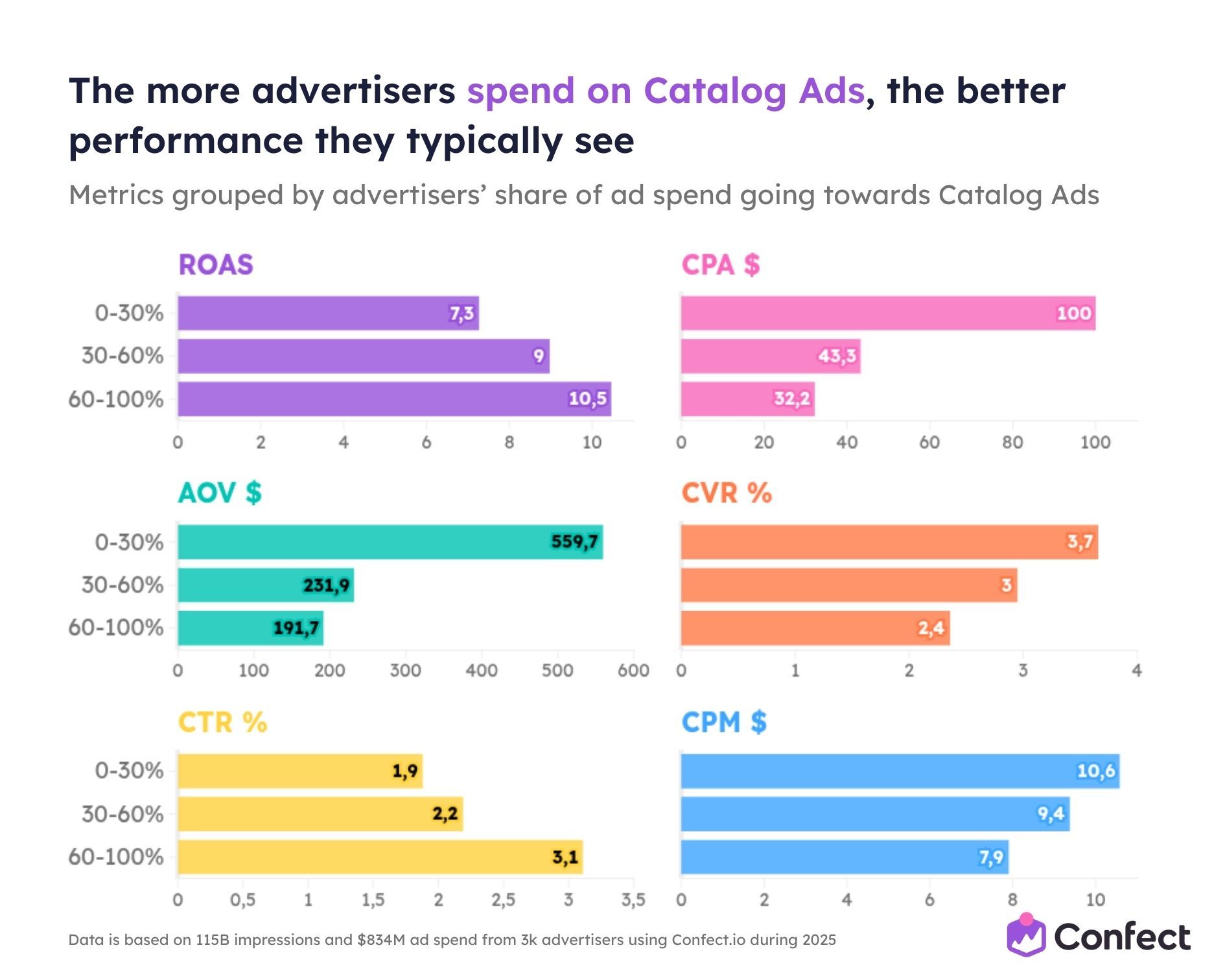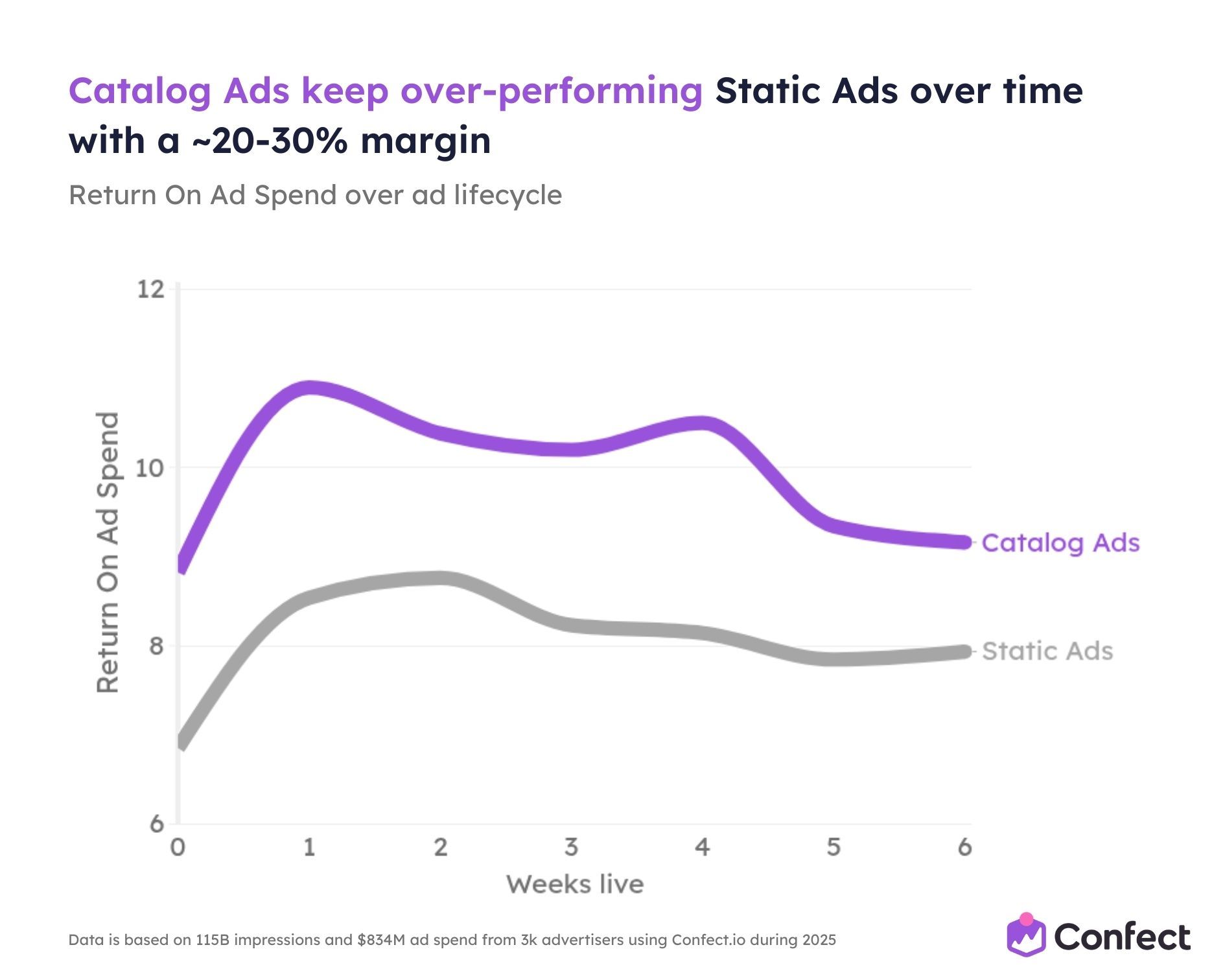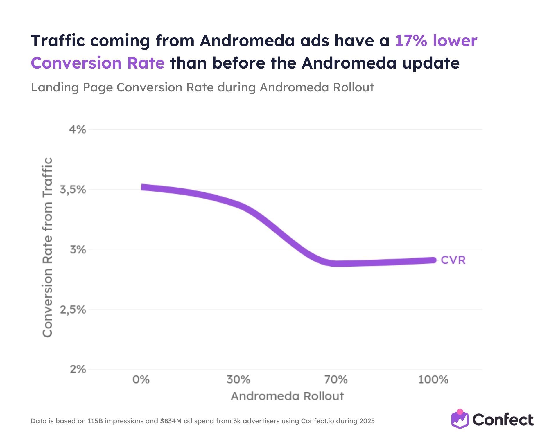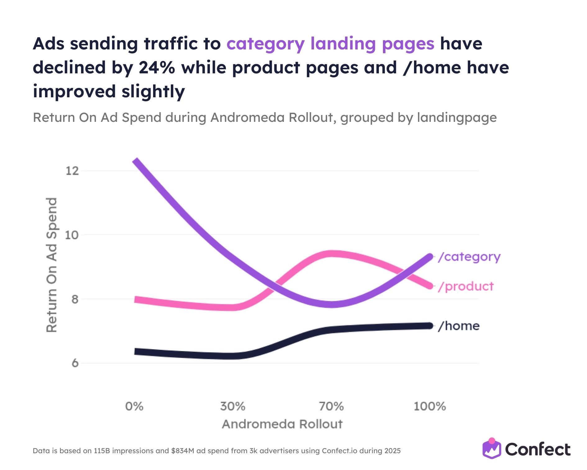 So we studied it. Across 3,014 eCommerce advertisers using Confect, covering $834 million in ad spend, 1 million ads, and 115.7 billion impressions during the full 2025 rollout period.