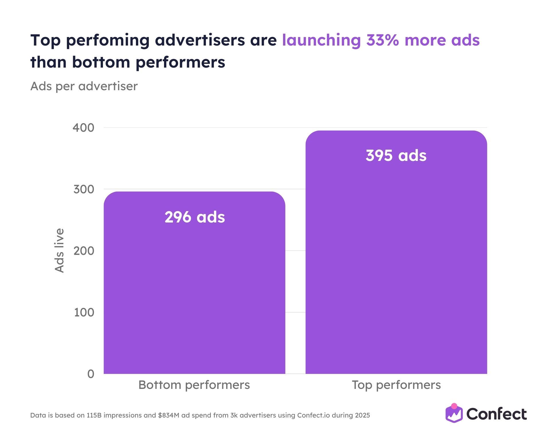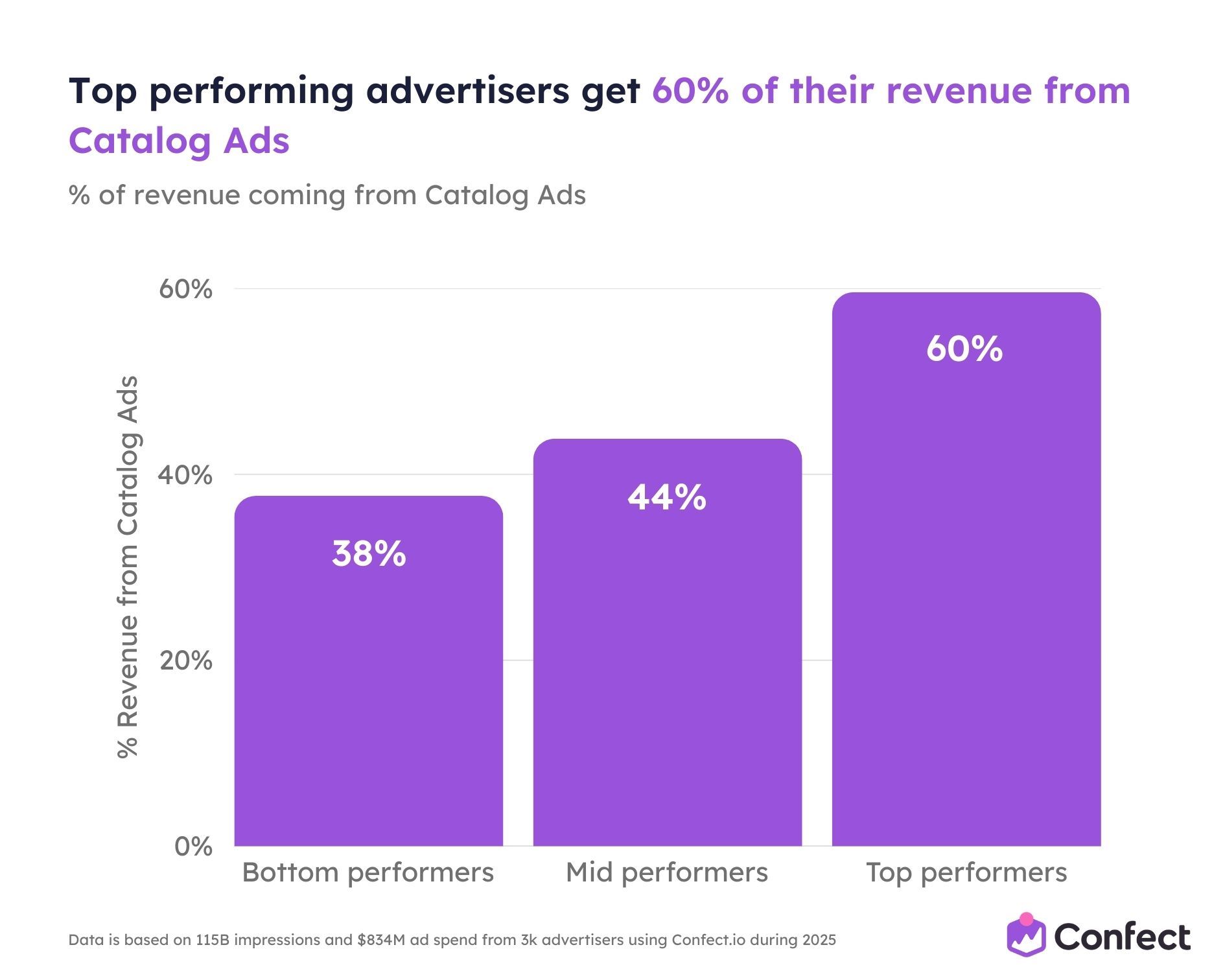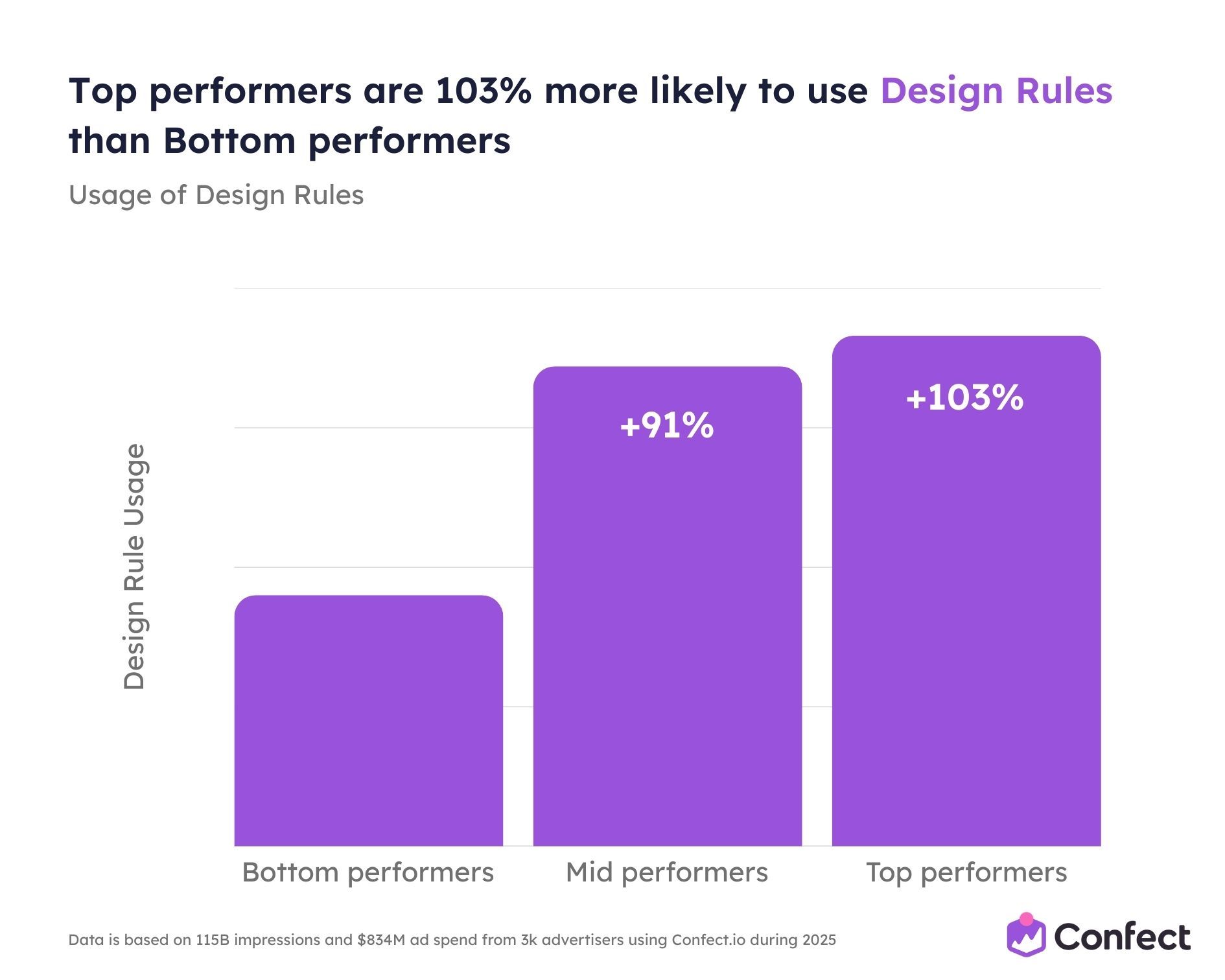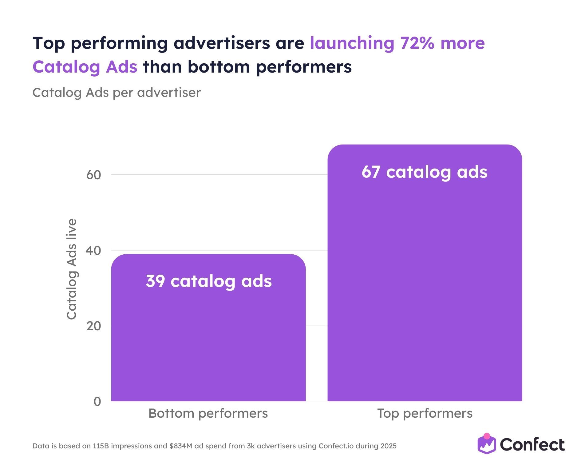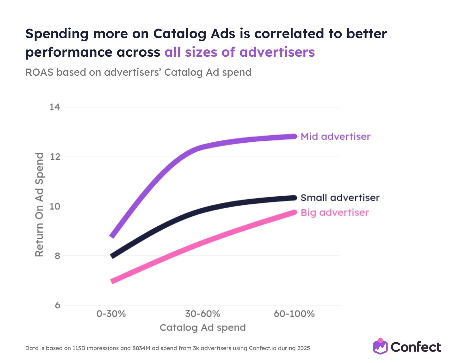 So we studied it. Across 3,014 eCommerce advertisers using Confect, covering $834 million in ad spend, 1 million ads, and 115.7 billion impressions during the full 2025 rollout period.